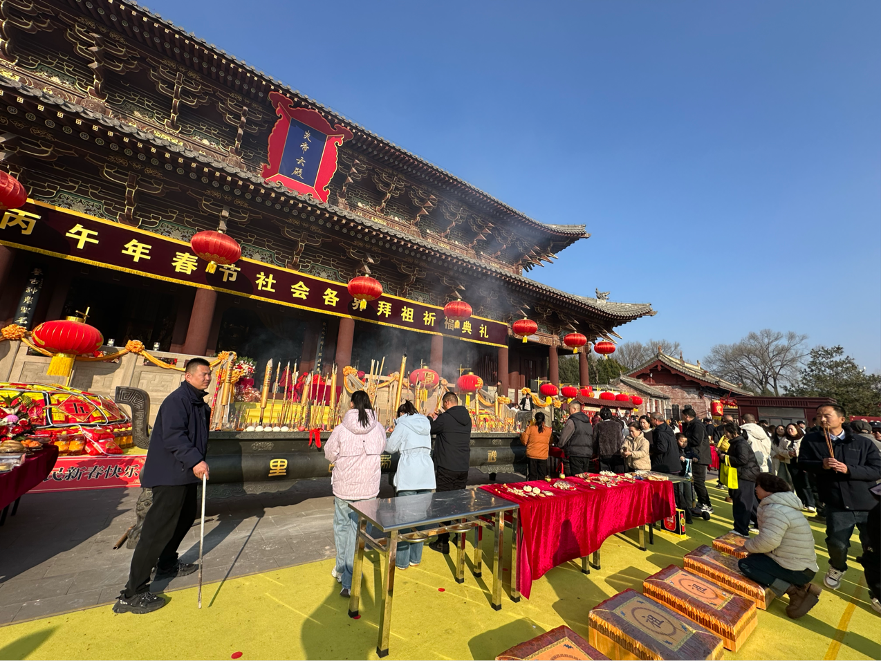 2月17日,夏历丙午马年正月初一。位于山西省晋城市高平市的炎帝陵生态文化旅逛区(以下简称“炎帝陵景区”)举行高平市丙午年春节社会拜祖祈福仪式,高平市企业家代表、炎帝信众和外埠旅客齐聚炎帝大殿,寻根祈福,《中国运营报》记者正在炎帝陵景区现场采访领会到,景区热闹不凡、人流如织,泊车场停满了各地车辆。9点50分,景区内鼓乐齐鸣,祭祖典礼正式起头。演职人员身着保守服饰,以古法礼节顺次完成伐鼓鸣金、鲜花、供品、心喷鼻、行施拜礼等仪程,炎帝信众及旅客跟从送宾步队沿着朝圣大道,慢慢走过庙门、好事殿、鼻祖殿,来到炎帝大殿前,配合祭拜人文鼻祖炎帝,祈福新的一年风调雨顺,祝福伟大祖国繁荣富强,家人幸福安康,事业江河日下。